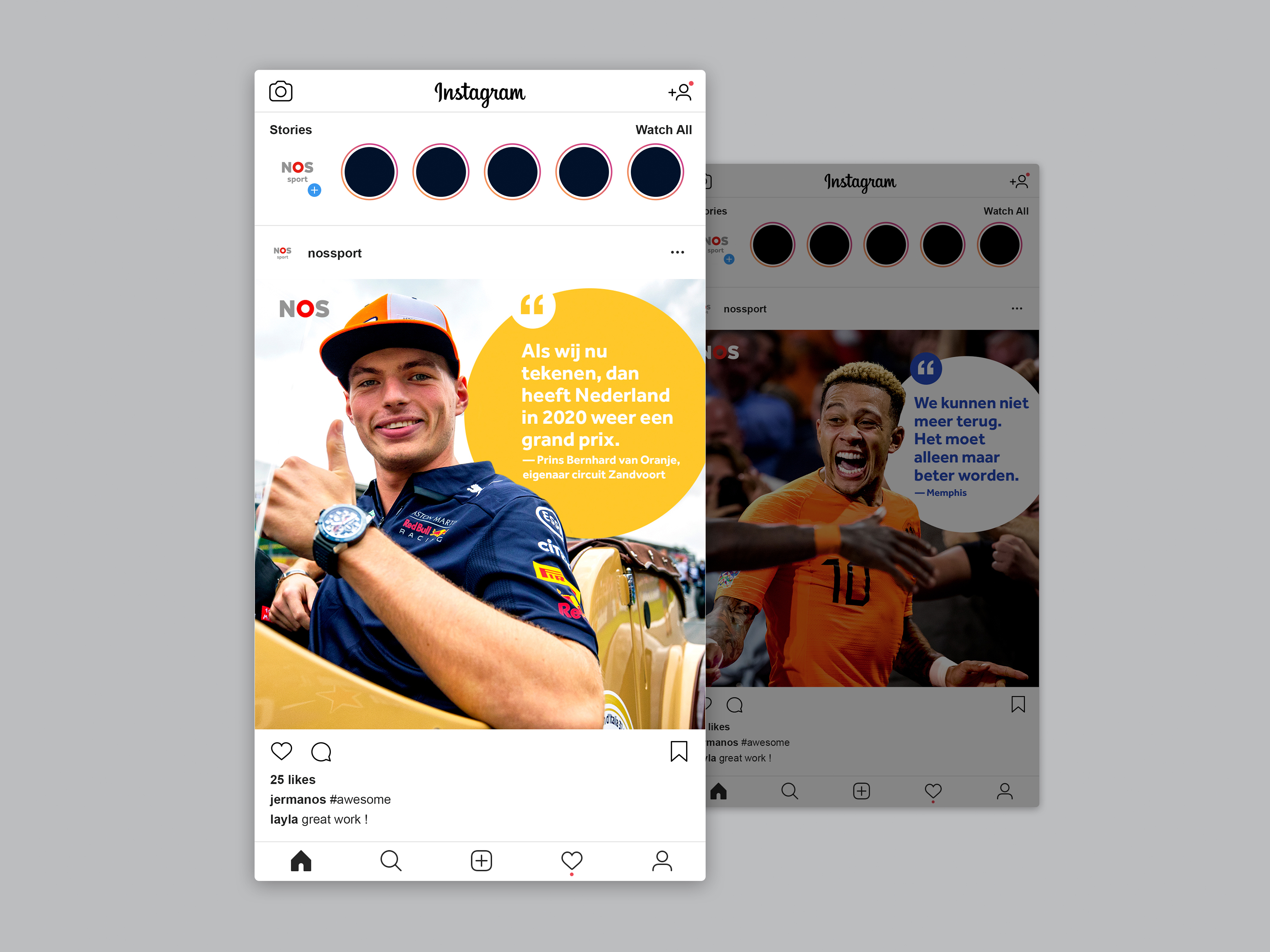 Gedurende een periode van 9 maanden heb ik gewerkt bij NOS Sport. In samenwerking met de socialredacteuren heb ik voornamelijk uitingen ontwikkeld voor de online kanalen van NOS Sport. Ook heb ik mij via de NOS academie verder mogen verdiepen in After Effects.